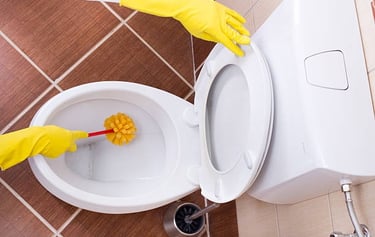 Removal of dirt and salt water stains from behind the toilet pot, behind the geyser, exhaust fan, etc.