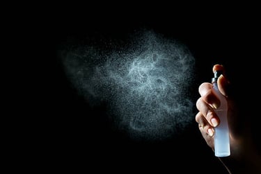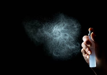 Drying up the bathroom with multi fiber cloth and spraying scented freshner.