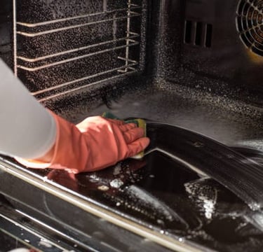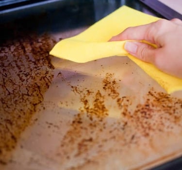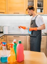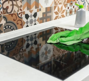 Removal of stains from wall tiles, sink, fittings, stove, exhaust/ceiling fan.