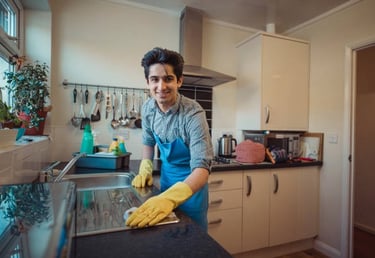 Cleaning areas under the sink,behind the refrigerator and microwave and spaces between furniture.